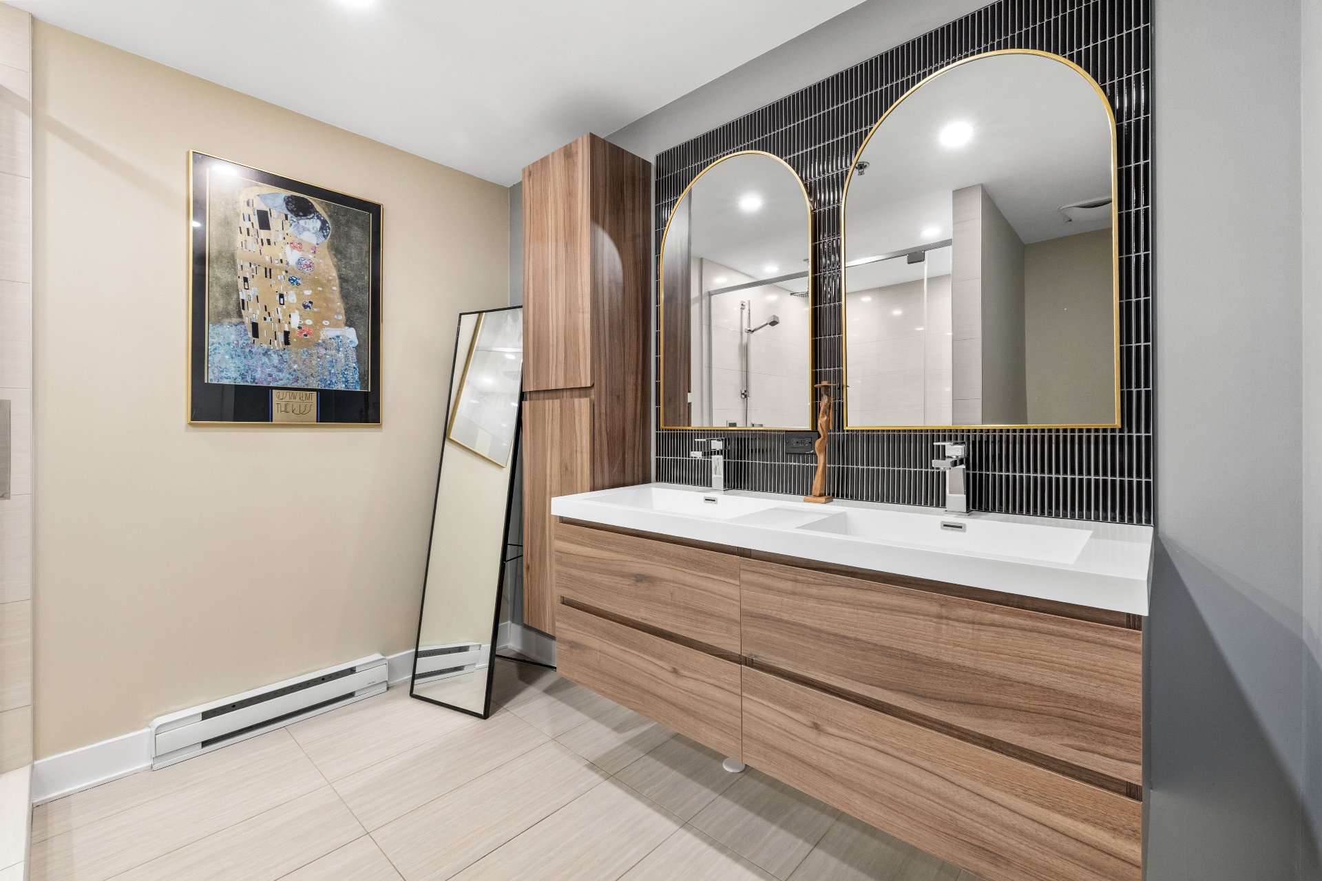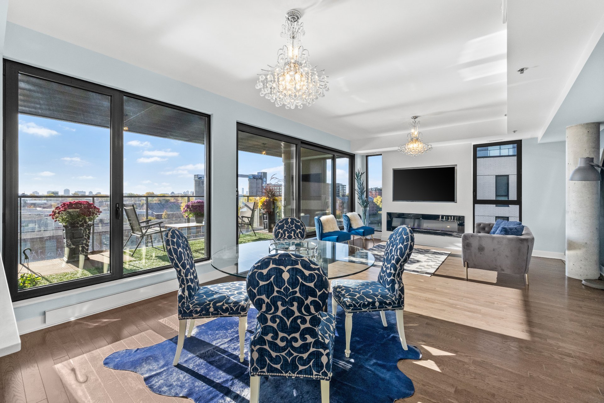 Penthouse d'exception avec vues panoramiques du le canal et la ville. Spacieux et baigné de lumière, ce penthouse remarquable de 3 chambres et 2.5 salles de bain offre une luminosité exceptionnelle, de généreux espaces de vie ainsi que des aires extérieures spectaculaires. Le concept à aire ouverte, mis en valeur par de vastes fenêtres,crée une transition harmonieuse entre l'intérieur élégant et les terrasses remarquables. Cette résidence rare offre un espace extérieur privé exceptionnel avec une vaste terrasse sur le toit, offrant des vues imprenables sur le canal Lachine d'un coté et le centre-ville de l'autre, parfaite pour recevoir ou profiter de moments de tranquillité. Une véritable oasis urbaine au coeur de la ville. Conçu pour allier confort et raffinement, le penthouse présente de hauts plafonds, des finitions contemporaines et un agencement soigneusement pensé offrant à la fois fonctionnalité et élégance. L'espace extérieur unique en son genre fait de cette propriété une occasion rare pour ceux qui recherchent un mode de vie luxueux alliant parfaitement intérieur et extérieur. Une propriété véritablement unique qui conjugue lumière, espace et emplacement dans l'un des cadres les plus recherchés de la ville. Bien plus qu'une résidence, un véritable art de vivre. Comprend une place de stationnement et un casier pour plus de commodité. Unité sur deux étages: 8eme et 9eme Les espaces communs au Bassins du Havre: * Piscine intérieure avec spa, sauna et hammam * Deux piscines sur le toit avec aires de BBQ, chaises longues et vues à couper le souffle * Centre de mise en forme de 6 000 pi² avec gym entièrement équipé et studio de yoga * Chalet urbain avec vues panoramiques sur la ville et salle de conférence avec cuisinette * Cour intérieure magnifiquement aménagée avec bassins d'eau et espaces verts * Immeuble sécurisé avec système de surveillance, interphone et dispositif d'arrêt d'eau * Station de lavage pour voitures et station de lavage pour chiens dans le garage Certification énergétique LEED: La certification LEED (*Leadership in Energy and Environmental Design*) respecte des normes strictes de conception et d'efficacité, visant à minimiser l'empreinte écologique et la consommation d'énergie et d'eau. Un environnement de vie sain, tout en protégeant la planète. L'eau chaude ainsi qu'une partie des coûts de chauffage et de climatisation sont inclus dans les frais de condo. EMPLACEMENT DE CHOIX: * Au coeur de Griffintown * En façade du canal et du bassin Lachine * À proximité des pistes cyclables, sentiers de course, parc canin et espaces verts * Près des restaurants, bars, boutiques et cafés branchés * À quelques pas du marché Atwater et du Vieux-Montréal * Facilement accessible depuis le centre-ville * À proximité des transports en commun (autobus, métro, train REM) * Accès rapide aux autoroutes 10,15,20 et720 * Projet d'école primaire à venir dans le secteur * À proximité de garderies